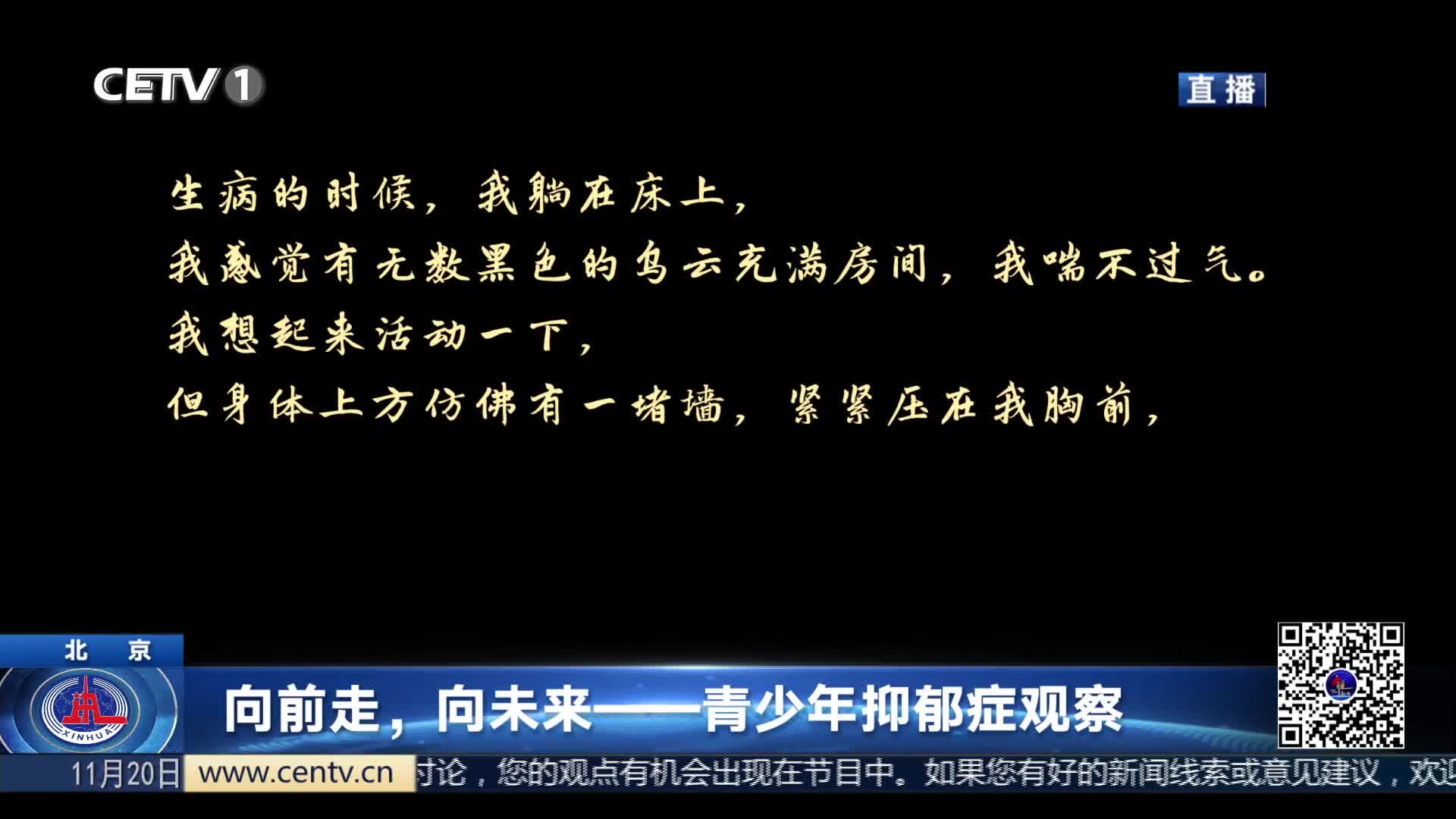 今天是世界儿童日,近年来,我国儿童青少年心理健康日益受到社会关注。那么儿童青少年心理健康存在哪些困境?为什么会有未成年人患上抑郁症?我们又该如何守护孩子的心理健康?来看记者调查。
