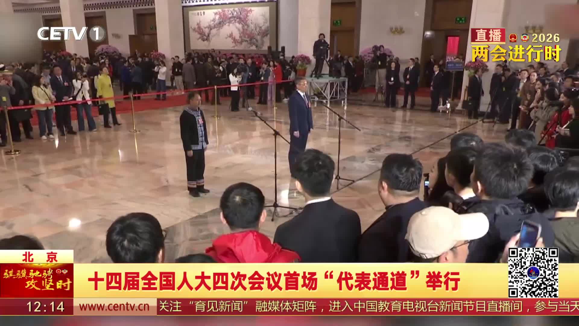 开幕会前,十四届全国人大四次会议首场“代表通道”举行。6位全国人大代表接受了媒体采访。