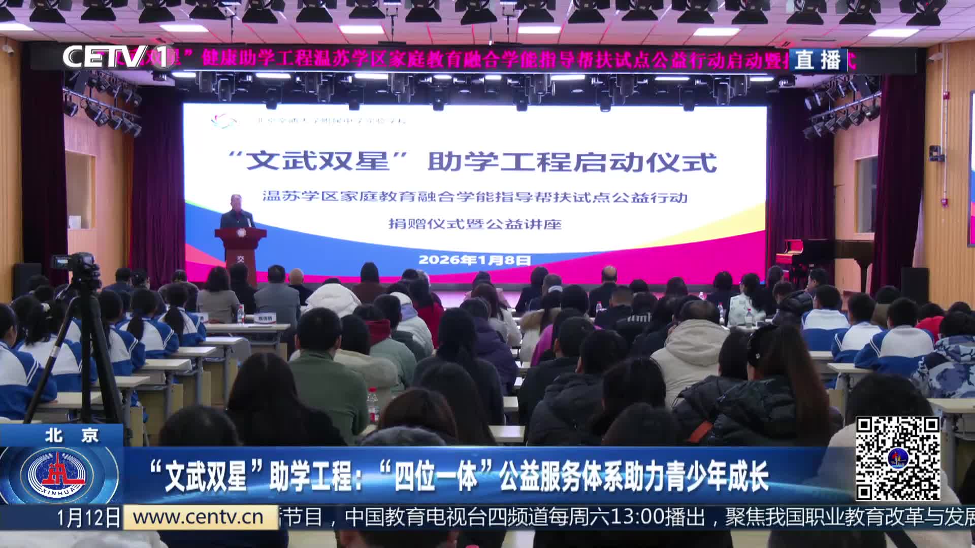 为更好把教育服务送到青少年身边,近日,“文武双星”助学工程家庭教育融合学能指导帮扶试点公益行动捐赠仪式暨公益讲座,在北京交通大学附属中学实验学校举行。