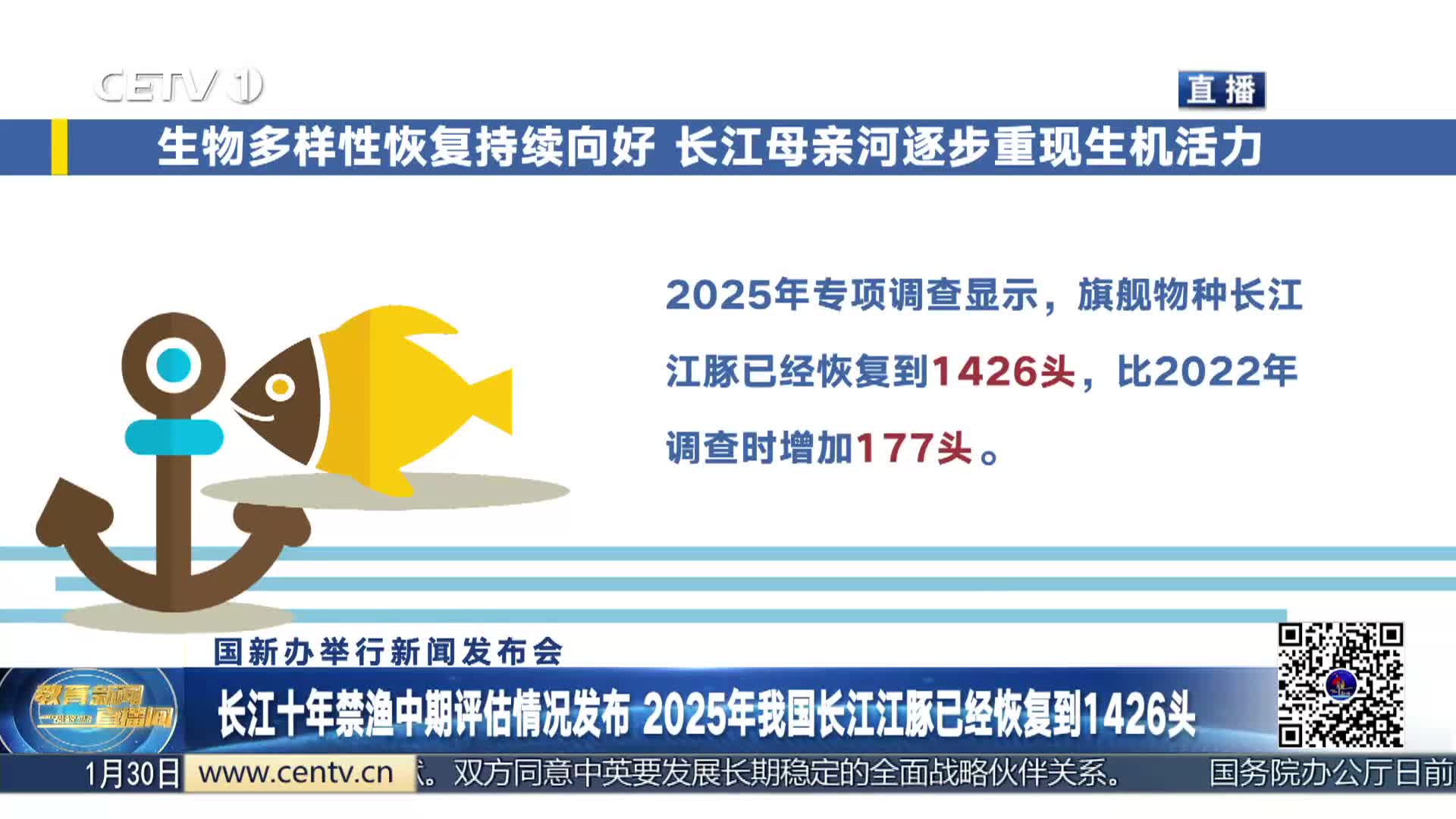 今天上午,国新办举行新闻发布会,相关负责人介绍长江十年禁渔中期评估成果和五年来阶段性成效,并答记者问。