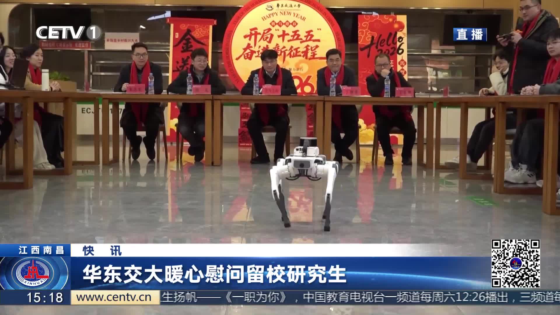 近日,华东交通大学为留校研究生开展新春慰问活动。活动现场,集中展示了学校自主研发的智能化站台雨棚巡检机器人与AR列控巡检系统,呈现轨道交通领域智能化、数字化的前沿成果。同学们还立足专业特色,借助AI技术生成个性化春联,让留校师生感受到浓浓的年味。