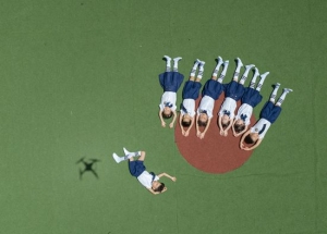 无人机航拍的一所幼儿园花式毕业照。视觉中国供图