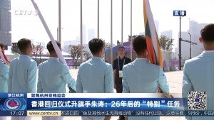 1997年7月1日,27岁的朱涛手捧五星红旗,分秒不差地将中国国旗在香港升起。26年后,53岁的朱涛有了新的身份,成为了一名杭州亚运村、亚残运村代表团欢迎仪式升旗手教官。今天,一起走近他的故事。 展开详细