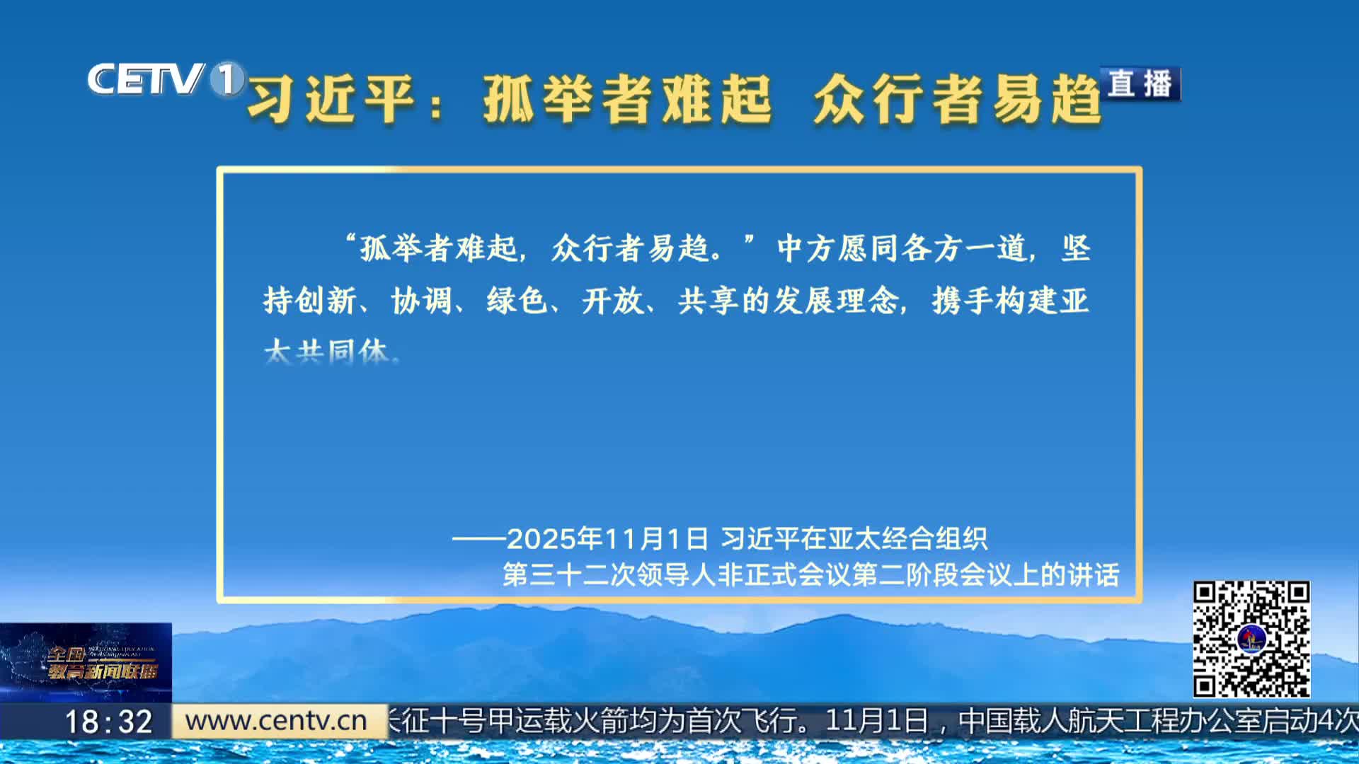 当地时间11月1日上午,国家主席习近平在韩国庆州出席亚太经合组织第三十二次领导人非正式会议第二阶段会议,并发表题为《共同开创可持续的美好明天》的重要讲话。一起学习。