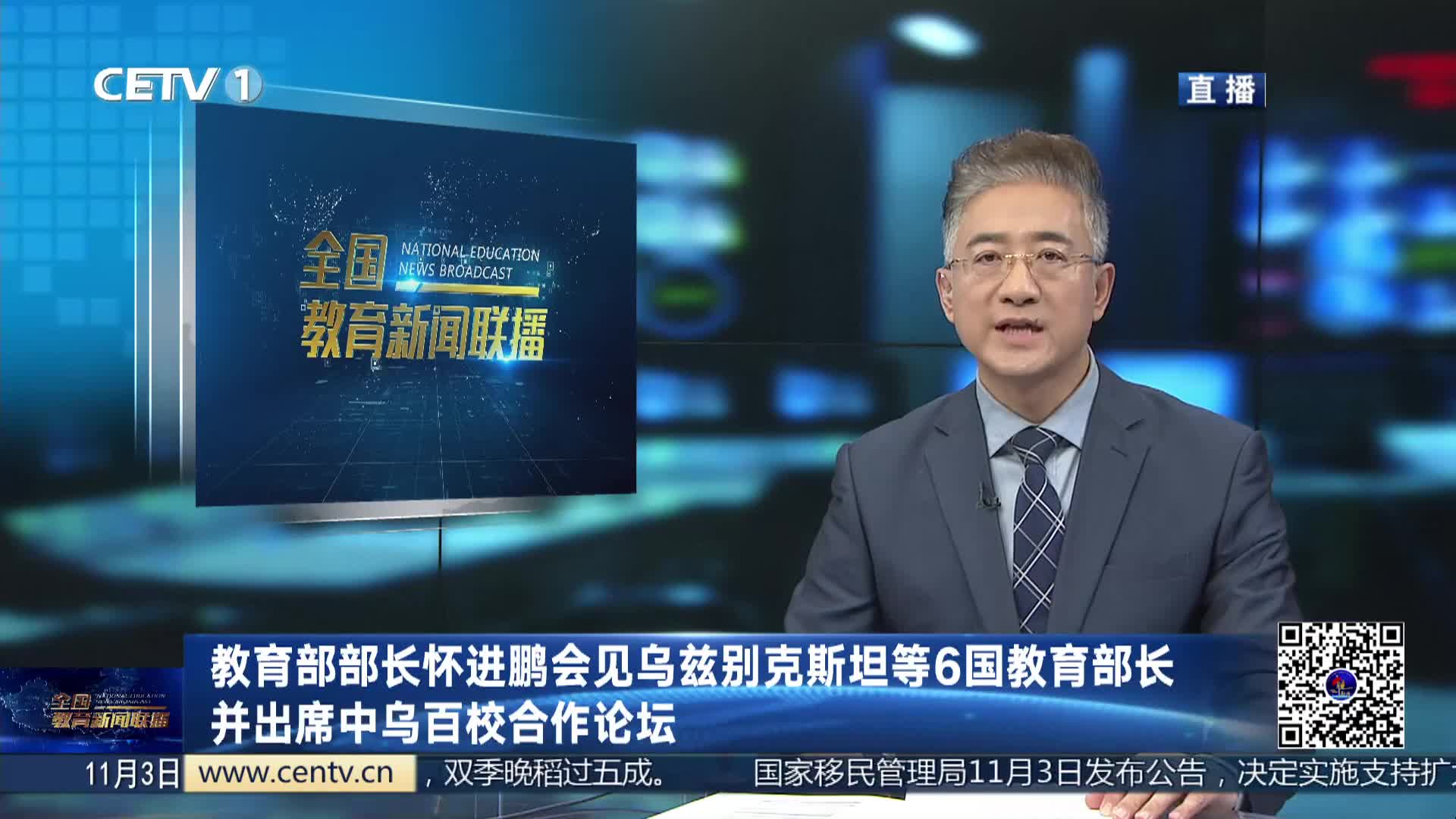 当地时间10月31日至11月2日,教育部部长怀进鹏在乌兹别克斯坦出席联合国教科文组织第43届大会期间,与乌兹别克斯坦、挪威、斯洛伐克、芬兰、埃及、巴基斯坦等6国教育部长分别举行双边会见,与乌学前和中小学教育部长签署关于开展中文教学的协议。怀进鹏还出席了第二届中乌百校合作论坛并发表主旨演讲。