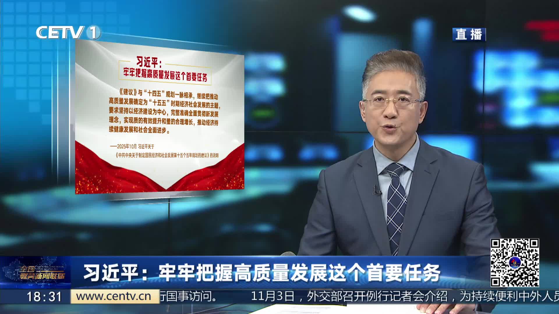 党的二十届四中全会明确了“十五五”时期经济社会发展必须遵循的原则,第三条就是“坚持高质量发展”。高质量发展是体现新发展理念的发展,是中国式现代化的必然要求。党的十八大以来,以习近平同志为核心的党中央紧紧围绕高质量发展这个全面建设社会主义现代化国家的首要任务,不断推动经济持续健康发展和社会全面进步。今天,我们梳理了习近平总书记的部分相关重要论述,与您一起学习领悟。