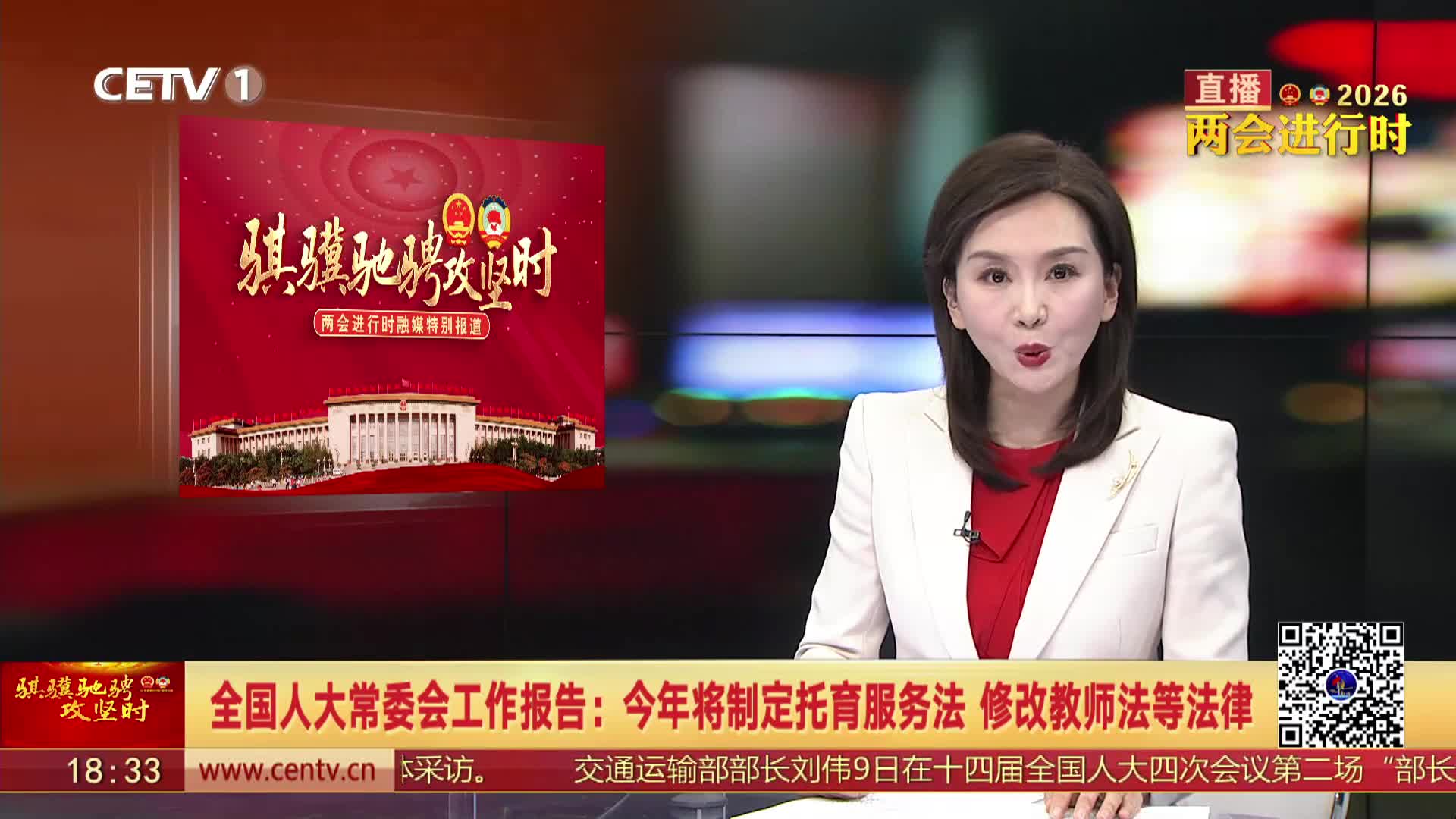在今天(3月9日)上午举行的十四届全国人大四次会议第二次全体会议上,全国人大常委会委员长赵乐际作全国人大常委会工作报告。报告显示,围绕加强民生保障,今年将制定医疗保障法、托育服务法、社会救助法、华侨权益保护法、国家消防救援人员法、产业工人队伍建设法,修改教师法、道路交通安全法。