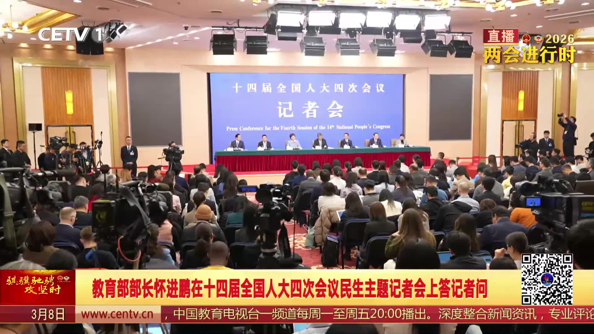 今天上午,十四届全国人大四次会议举行民生主题记者会。教育部部长怀进鹏回答中外记者提问。