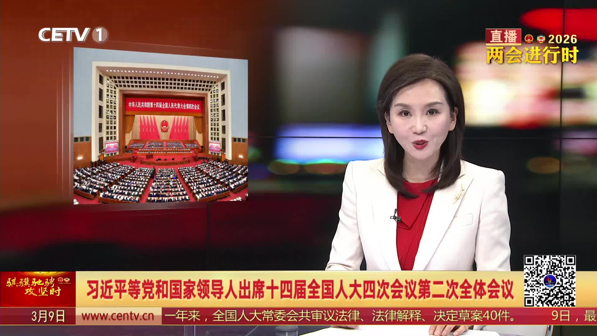 十四届全国人大四次会议3月9日上午在北京人民大会堂举行第二次全体会议,习近平等党和国家领导人出席会议。
