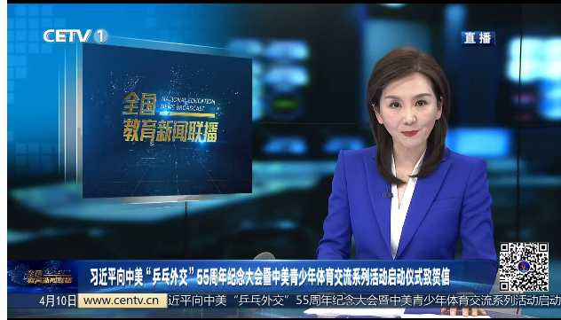 4月10日,国家主席习近平向中美“乒乓外交”55周年纪念大会暨中美青少年体育交流系列活动启动仪式致贺信。
