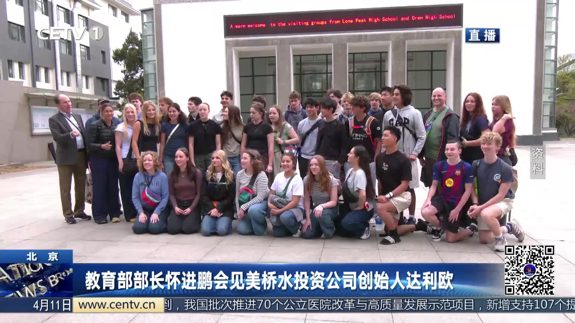 4月9日上午,教育部部长怀进鹏在北京会见来访的美国桥水投资公司创始人达利欧一行。