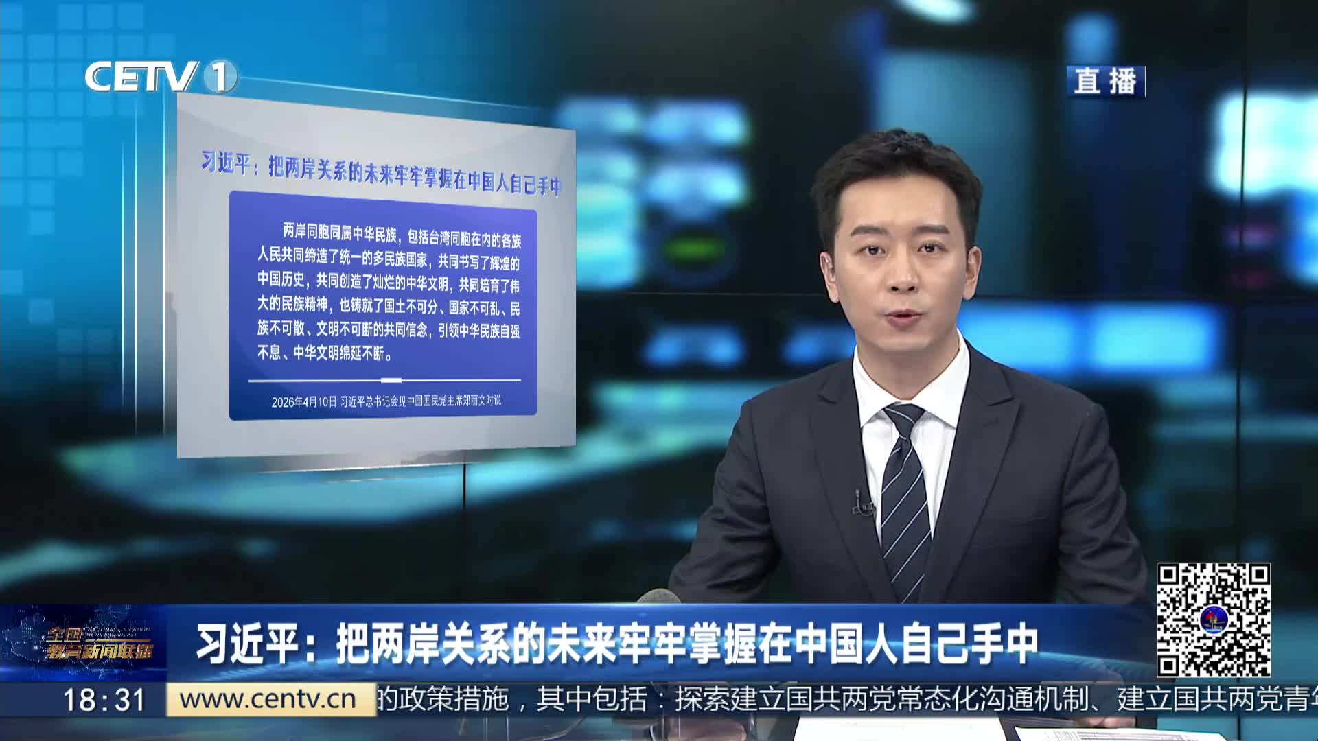 4月10日,中共中央总书记习近平在北京会见郑丽文主席率领的中国国民党访问团并发表重要讲话,为推动两岸关系发展进一步指明了前进方向、提供了重要指引。今天,我们梳理了总书记重要讲话的部分内容,与您一起学习领会。
