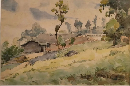 冯中衡《江津五十三梯——武昌艺专校舍》水彩28cm×19cm 1944年 私人收藏