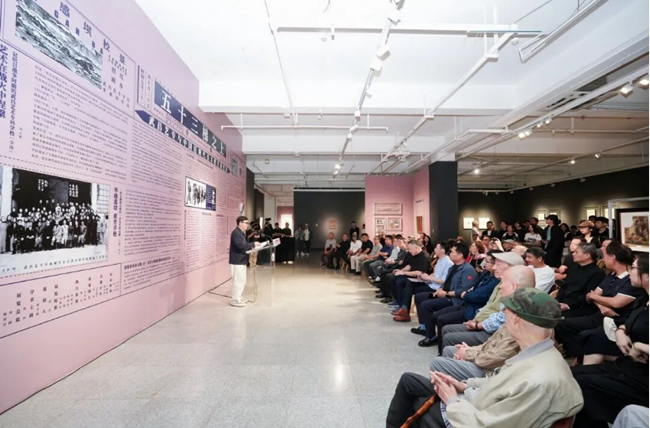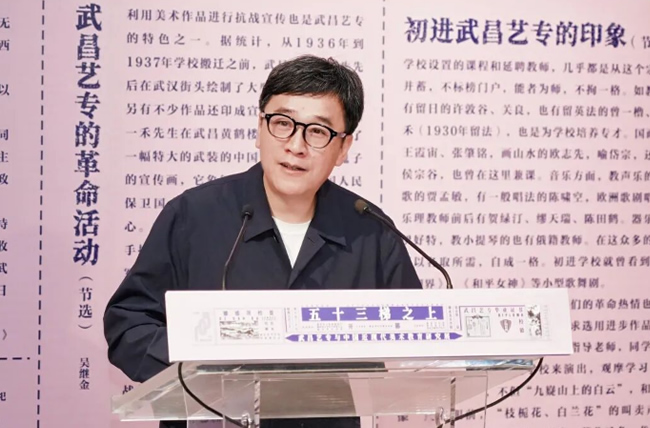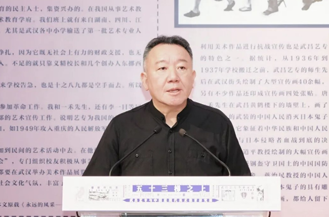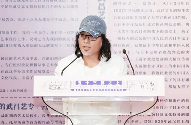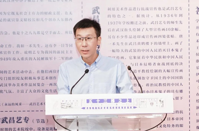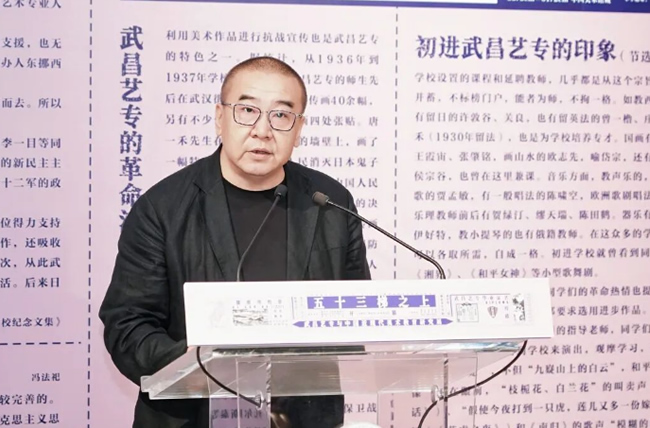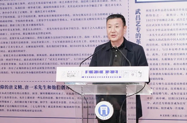 ▲武昌艺专师生后人代表、湖北美术学院实验艺术学院院长唐骁致辞