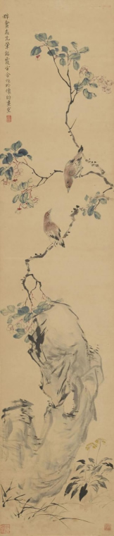 唐义精、欧志先、张肇铭、王霞宙《怀约画室合作花鸟》中国画 142cm×30cm 约1920-1930年代 湖北美术学院藏