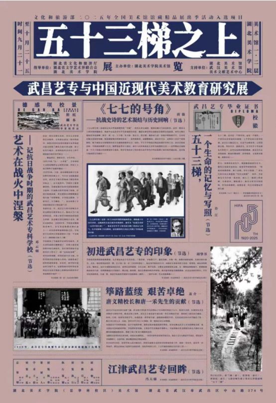 今年时值湖北美术学院建校105周年,本次展览不仅是对一段校史的追溯,更是对中国现代美术教育源流的一次深刻梳理;不仅是对先师先贤的致敬,更是对今日艺术教育何为、艺术使命何往的一次庄严回响。五十三梯石阶犹在,而阶梯之上曾经坚守的信仰,仍如长明之灯,照耀着一代代艺术后来者之路。